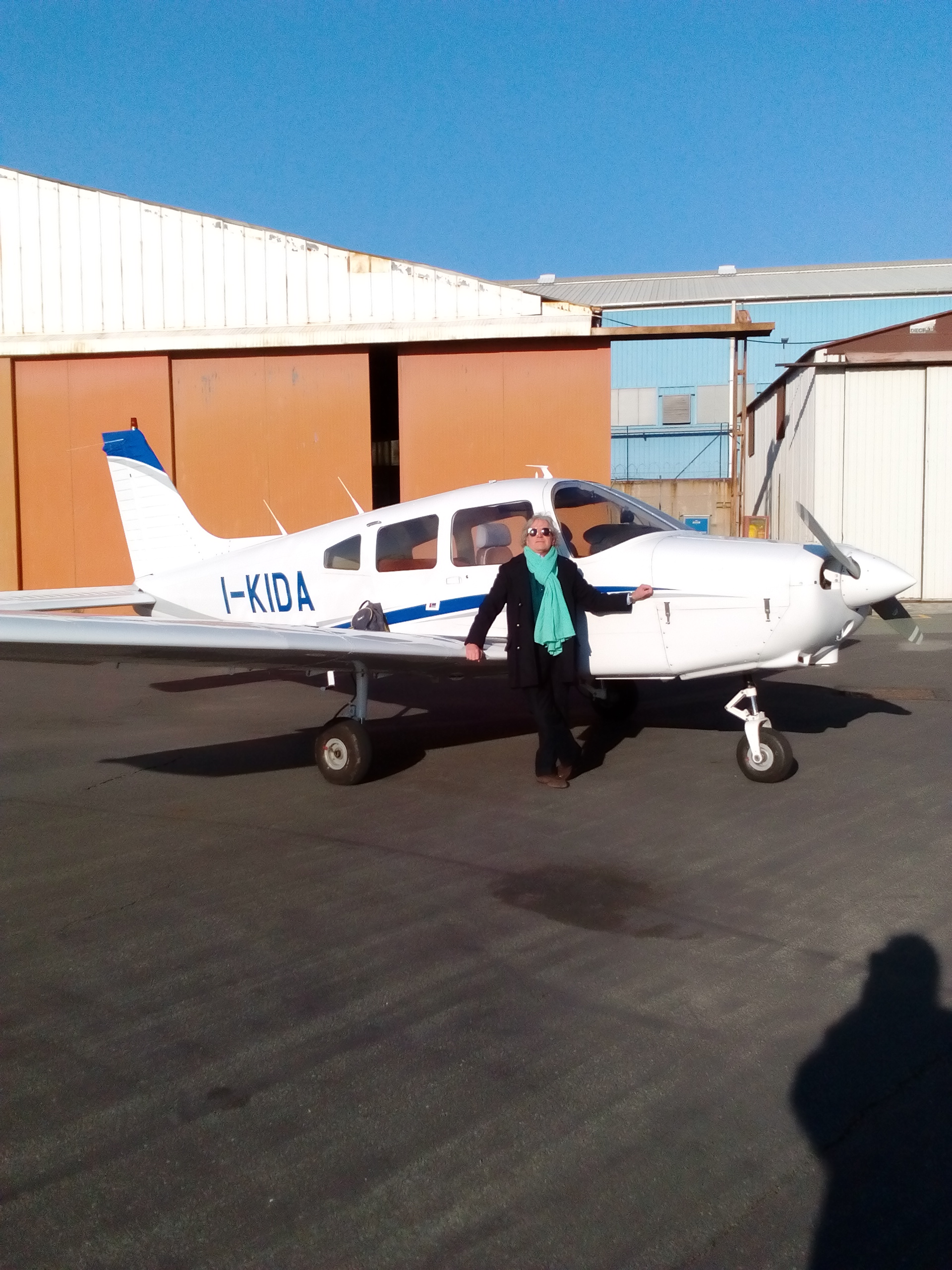 Foto a sinistra: Ai comandi di un Robin 400 __ Foto a destra: Maggio 2015 dopo l'atterraggio con un Piper PA 28 ad Alessandria
